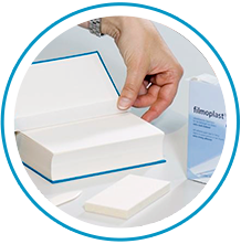 Películas y cintas para el cuidado de libros y documentos.